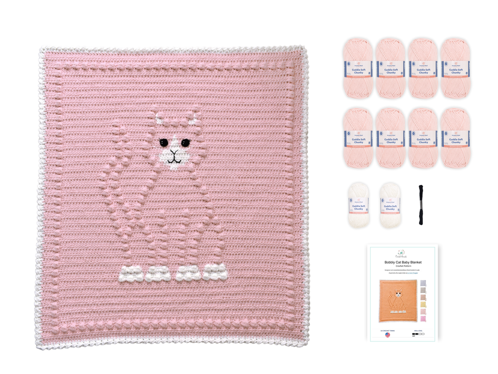 Bobbly CAT Crochet Baby Blanket KIT